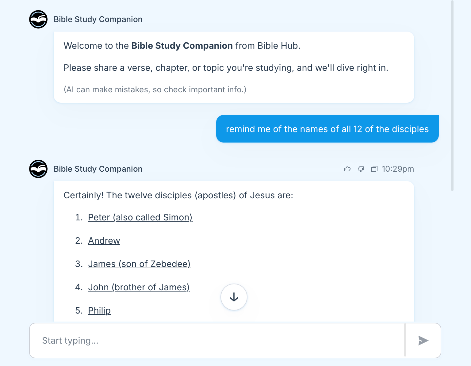 The Bible Hub AI Bible Study Companion provides unlimited access to contextual guidance, guided questions, and clarifying explanations designed to support careful, thoughtful reading of Scripture.